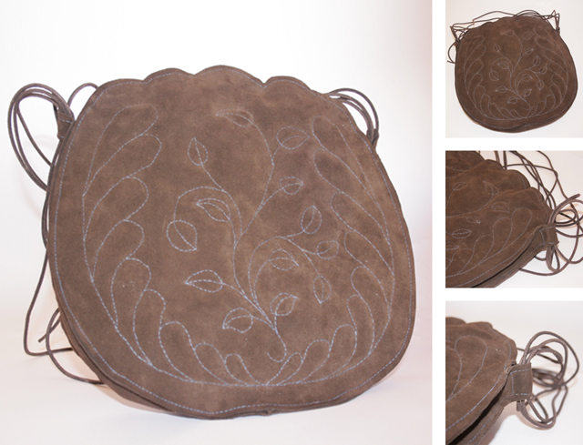 Arpillera y cuero: 30cm x 20cm