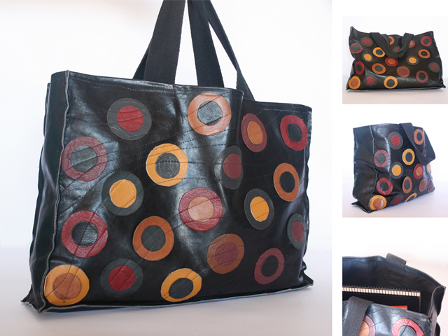 Tela y cuero: 34cm x 25cm